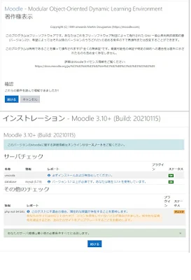 サイト管理→通知→利用可能な更新をチェックする、を実行すると ダウンロードサイトに辿り着くので、必要に応じてダウンロードします。 Upgradeの方法は、上記「Moodleの初期設定」と同様の手順です。